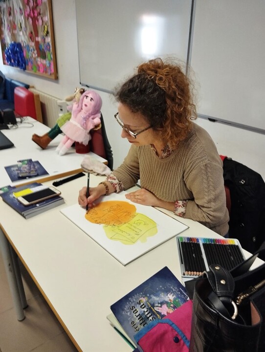 Nas minhas visitas às escolas do 1º ciclo, levo O Ministério das Criaturas Fantásticas apresentando-o e dando a conhecer, através da leitura, a estória e também todas aquelas criaturas fantásticas e seres que lhe dão vida, algumas muito portuguesas como é o caso da Coca, dos Tardos, do Olharapo, da Pieira e outros. O desenho vem complementar e engrandecer a tarefa que muito prazer me dá, pois permite-me abrir este vasto mundo imaginário que tão bem as crianças conhecem. Faço sempre uma leitura seguida de diálogo com muuuuitas perguntas, o remate final é feito com o desafio: desenhar uma criatura fantástica, nascida da imaginação e inspirada nas leituras e não só. Desta forma, com o desenho e a criatividade, o Mundo das Criaturas ficará mais vivo e forte, crescendo com todos estes seres imaginários.